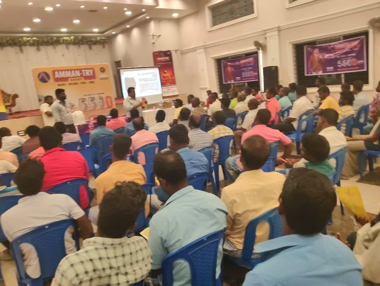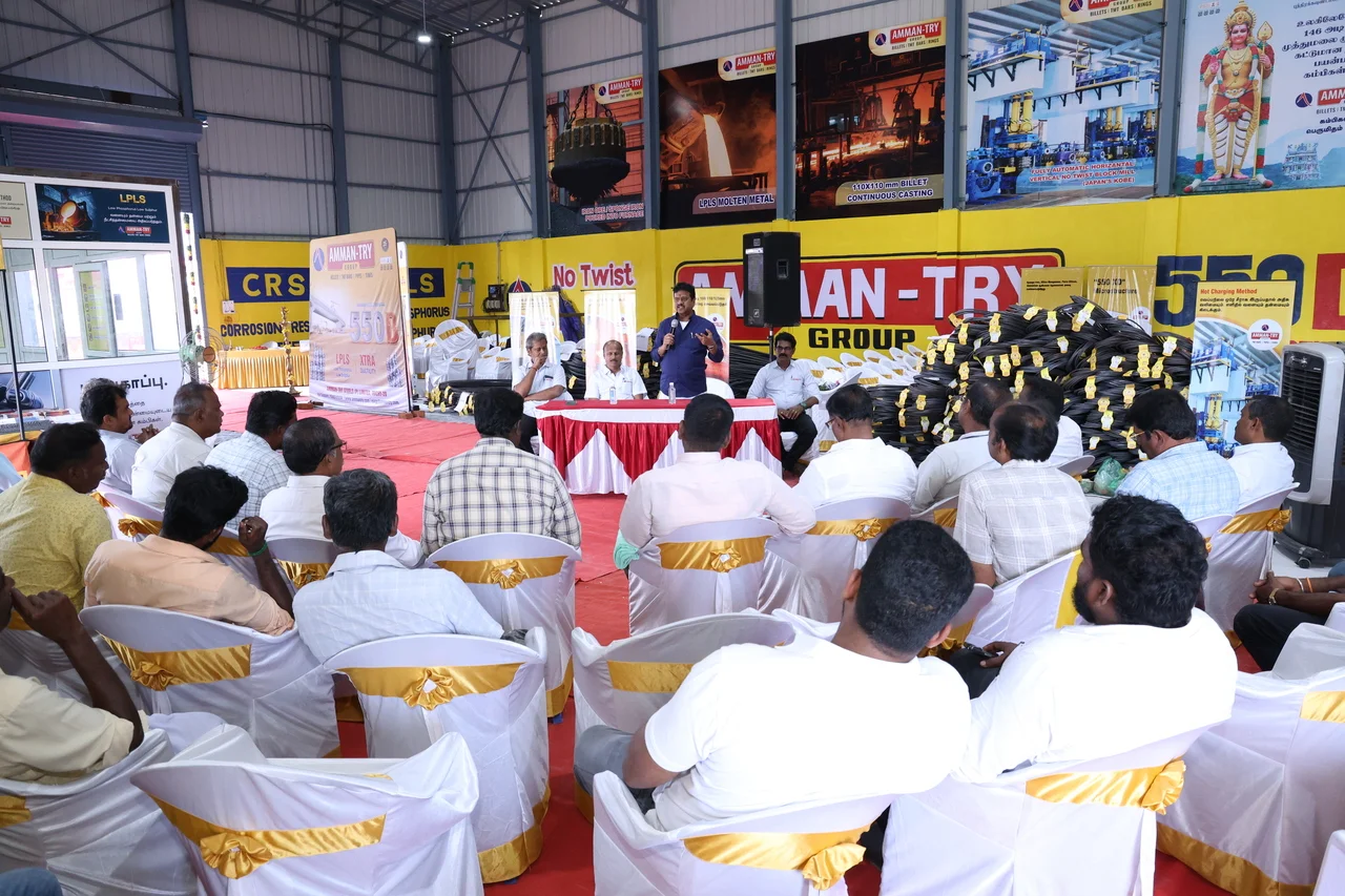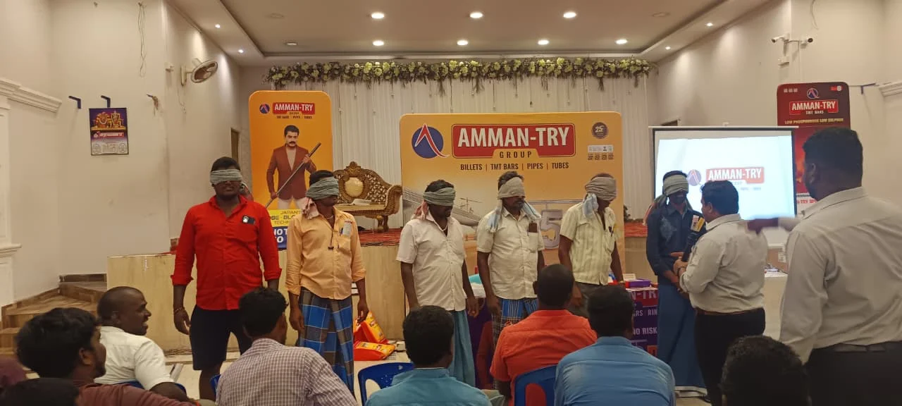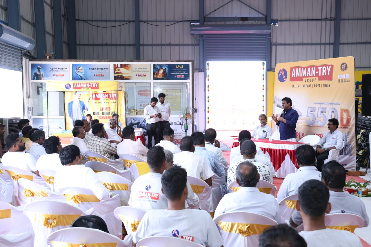 AMMAN-TRY conducted a Bar Bender Meeting on 06th October 2025 at Chetpet in association with AP Saami Steel. The session focused on 550D TMT bars, LPLS technology, and quality construction practices, with participation from 100 bar benders. The event concluded with dinner and complimentary gifts including T-shirts, caps, and brochures.