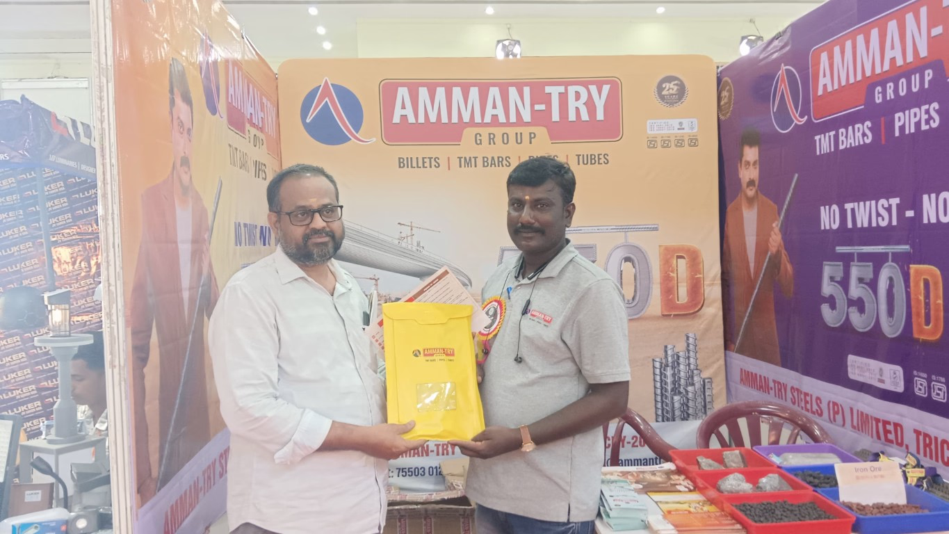To spread awareness among home builders and highlight the importance of quality construction materials, AMMAN-TRY participated in a Construction Materials Exhibition held from August 1 to August 3, 2025, at Rajeswari Mahal, Aranthangi, Pudukkottai District.