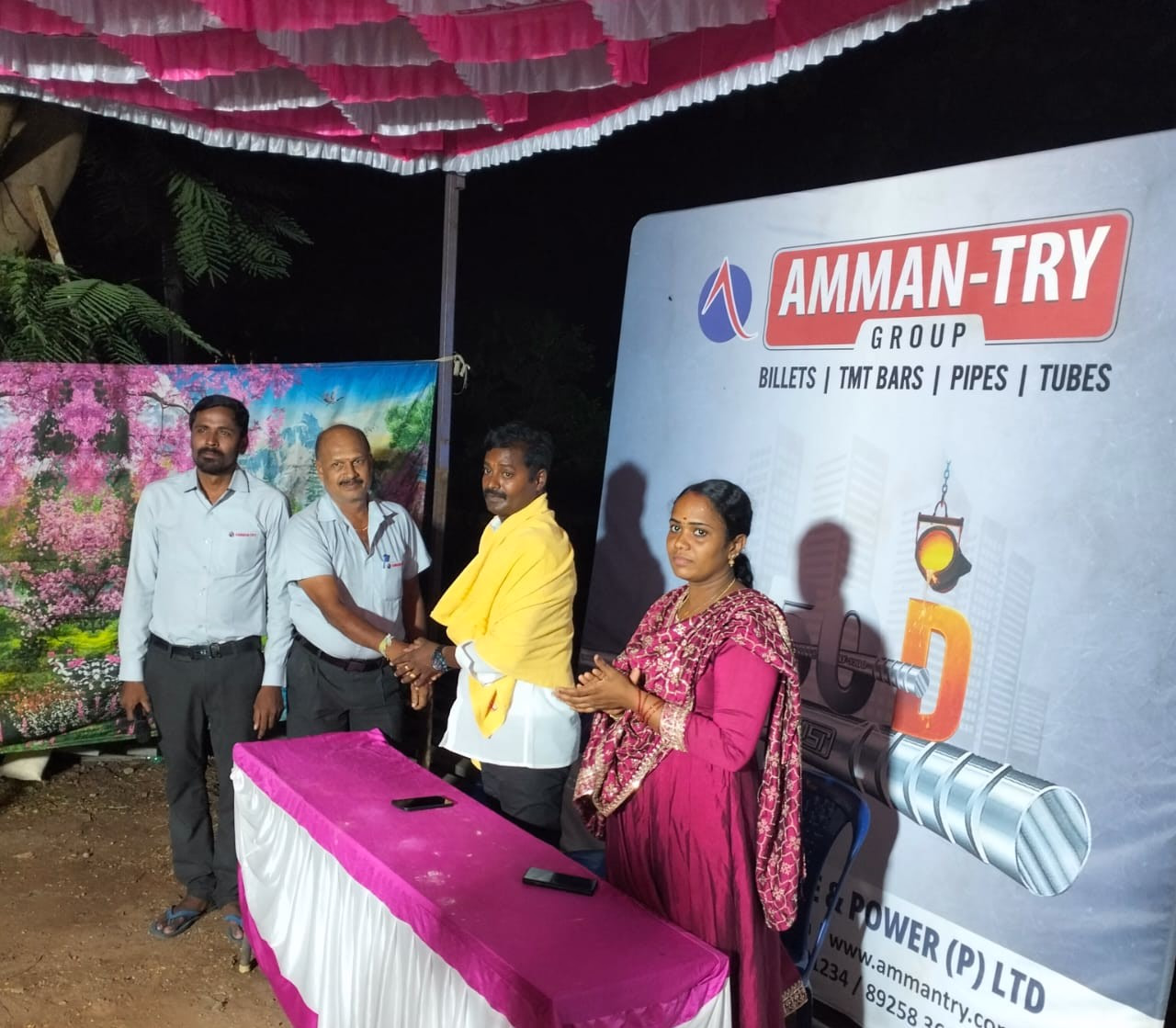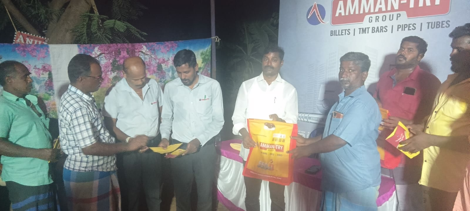 Vinayaka Agency conducted a session with 60 bar benders highlighting AMMAN-TRY TMT advantages, ready-made rings, and application suitability.