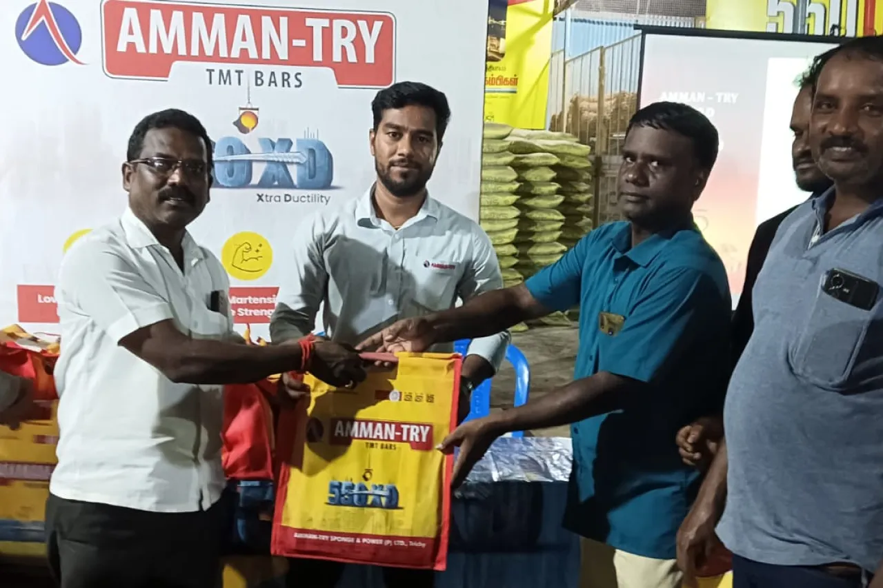 On behalf of Sakthi Agencies, a Bar Benders meeting was held on 16-05-2024 at Kelambakkam, where more than 50 bar benders participated and benefited. These meetings are part of a long-standing effort by AMMAN-TRY, in collaboration with dealers, to raise awareness about the critical use of TMT bars, pipes, and tubes in structural applications.
