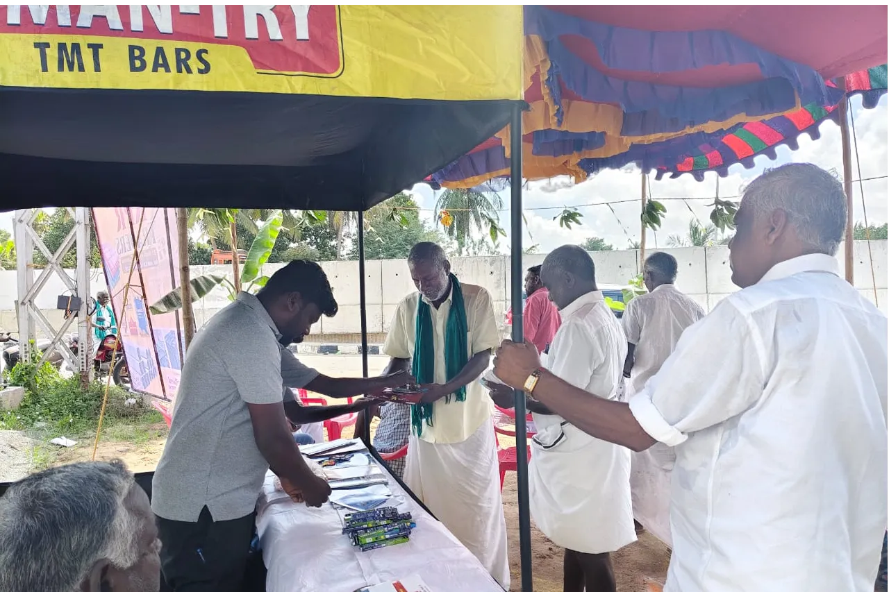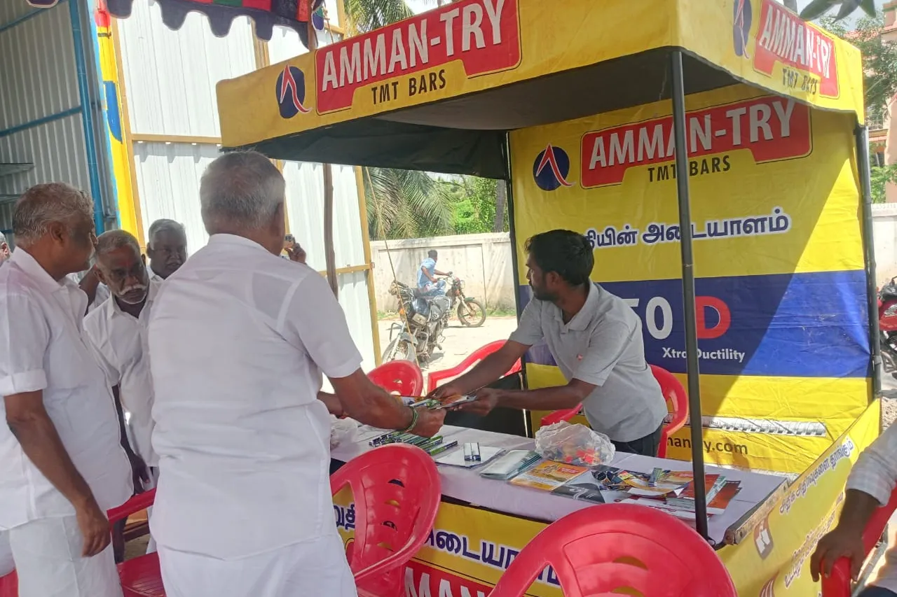 18th March 2025 – A similar stall was set up at the store inauguration of KPR Steel & Cement at B. Mutlur, also an authorized dealer of AMMAN-TRY. Keychains and pens were distributed to all guests at the event.