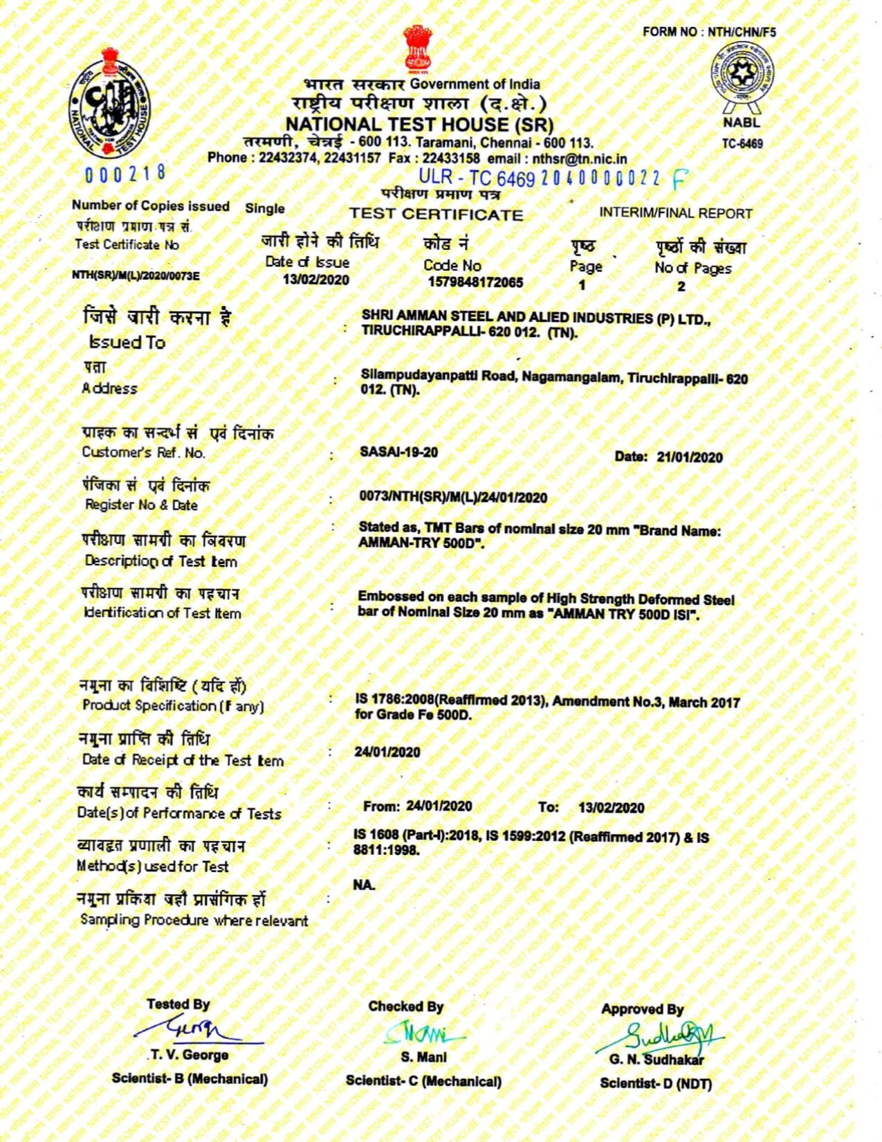Amman Try Steel Group is committed to manufacture and supply High Quality TMT bars, CRS bars, Ready Made Steel-RINGS, 500 guarD bars at reasonable price to total customer satisfaction. This Is Achieved By Continual Improvement Basis, Zero customers Complaints & Timely delivery of products.